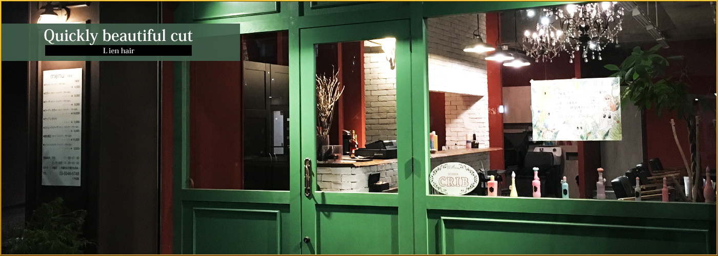 ![]() 「Lien=“絆”」を大切に。旬のスタイルを上質な空間でご提供。バーカウンター、シャンデリア「空間」にとことんこだわった店内で、ゆったりリラックスしながら理想のスタイルを手にしていただきます。お出迎えからお見送りまで一人のスタッフが責任を持ってご担当させていただきます。 |